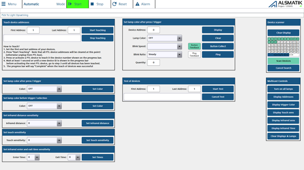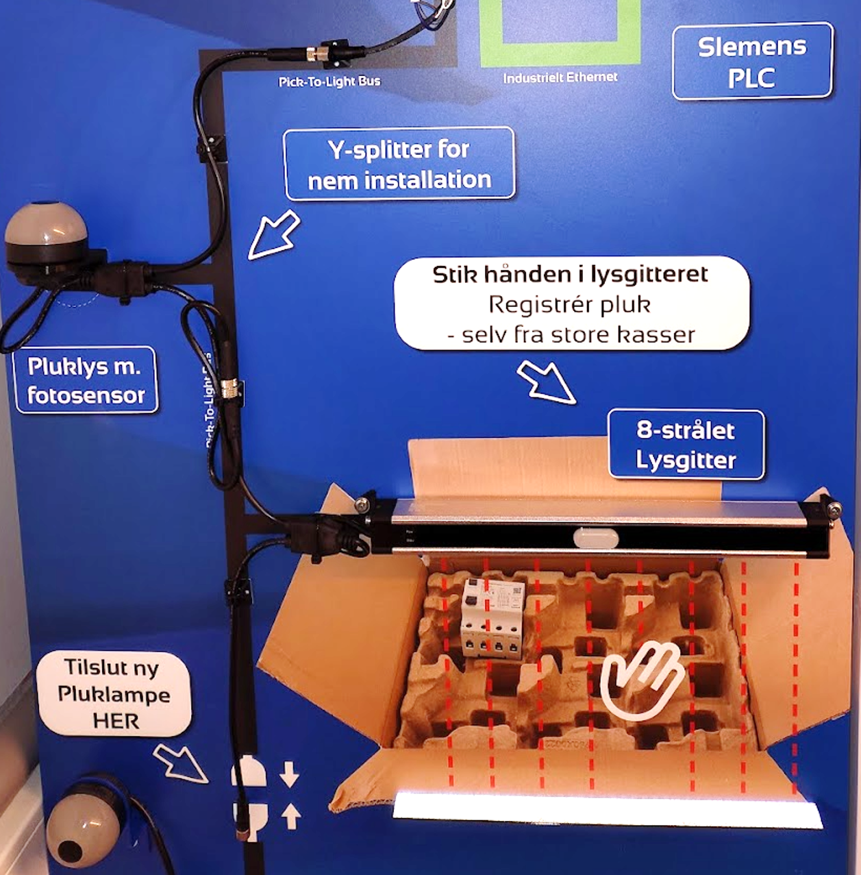 Registrere bevægelser og pluk gennem IR sensor. Forbindes med RS485 Bus. RGB LED for signal til pluk. Nem og hurtig tilslutning af en eller flere Pick to Light-enheder.